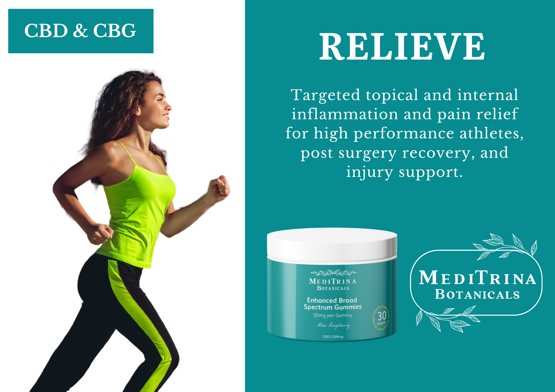 A relaxing mix of CBD and CBG internal inflammation and pain relief for high performance athletes, post surgery recovery, and injury support.